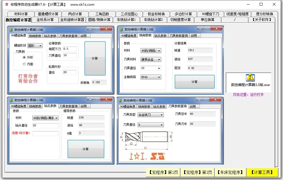 本款宏程序软件工具合集专为数控加工人员设计,集成了多种实用计算功能,涵盖车削、铣削、钻削等多个加工环节,大幅提升编程效率与加工精度。