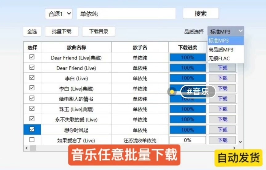 本工具支持一键批量下载功能,无需逐首点击,极大提升下载效率。