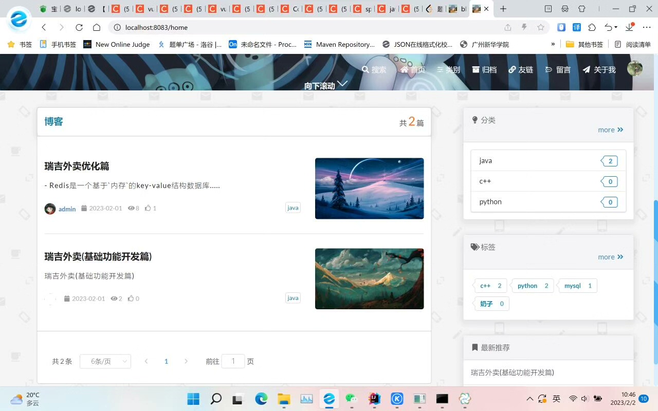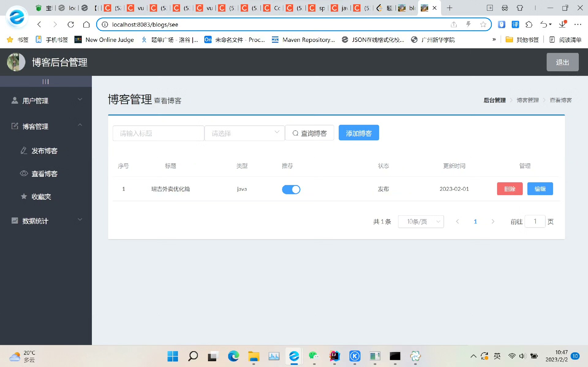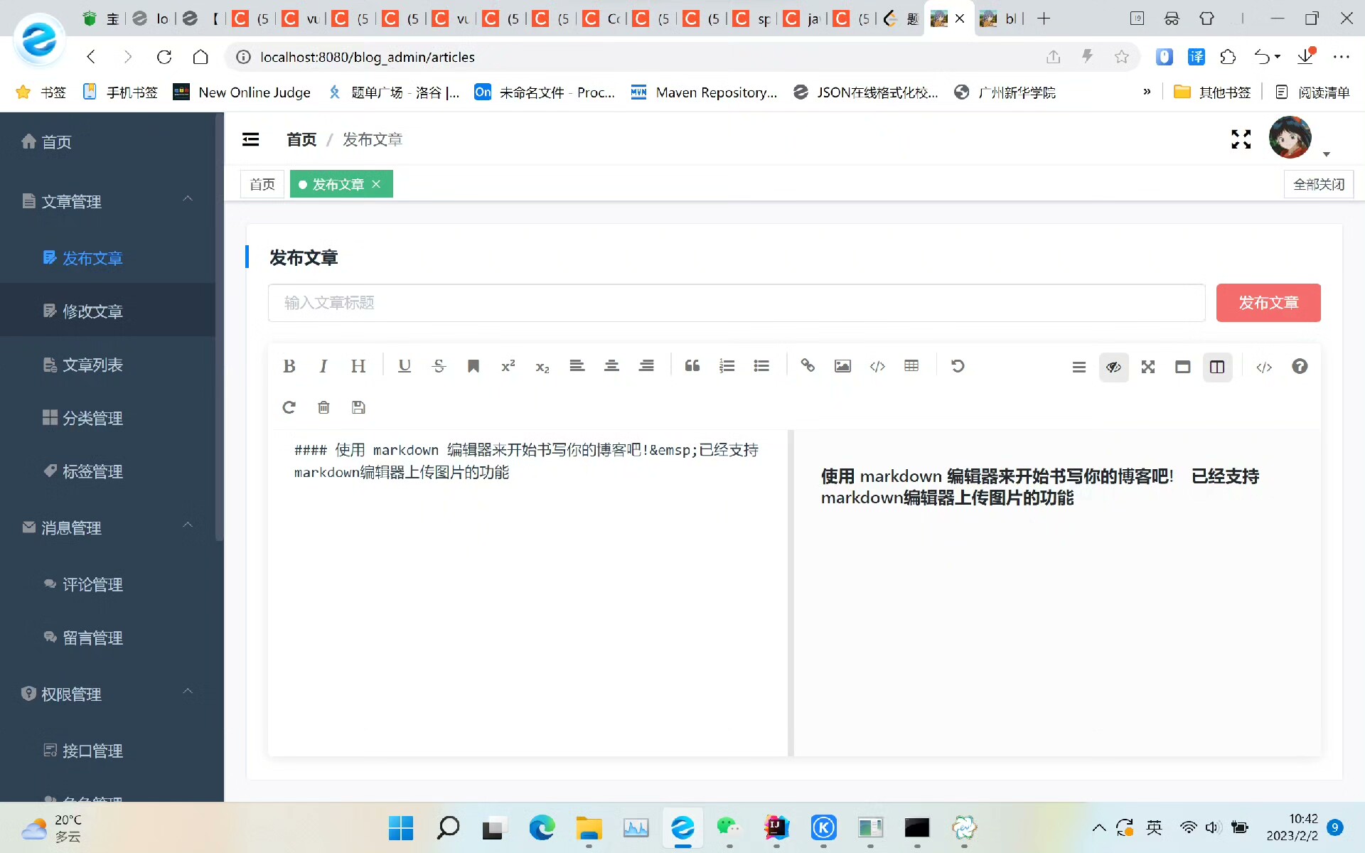 用户可发布、修改、删除自己的博客文章,并支持其他用户评论互动。