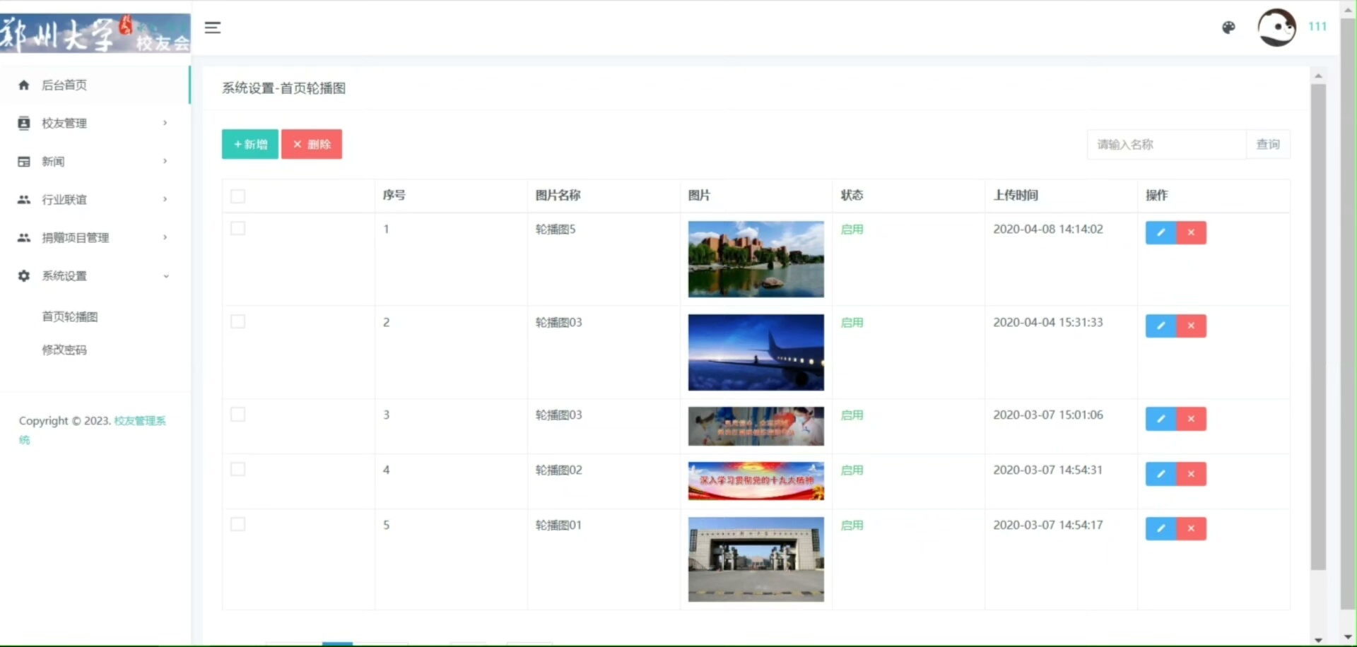管理员通过专属登录通道进入后台,可对校友信息进行增删改查操作,统一管理用户数据。