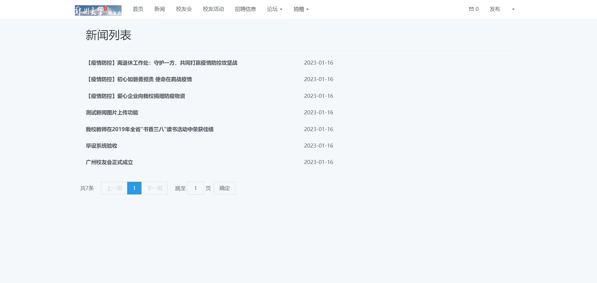 首页展示最新动态与重要通知,新闻模块发布校园及校友相关资讯。