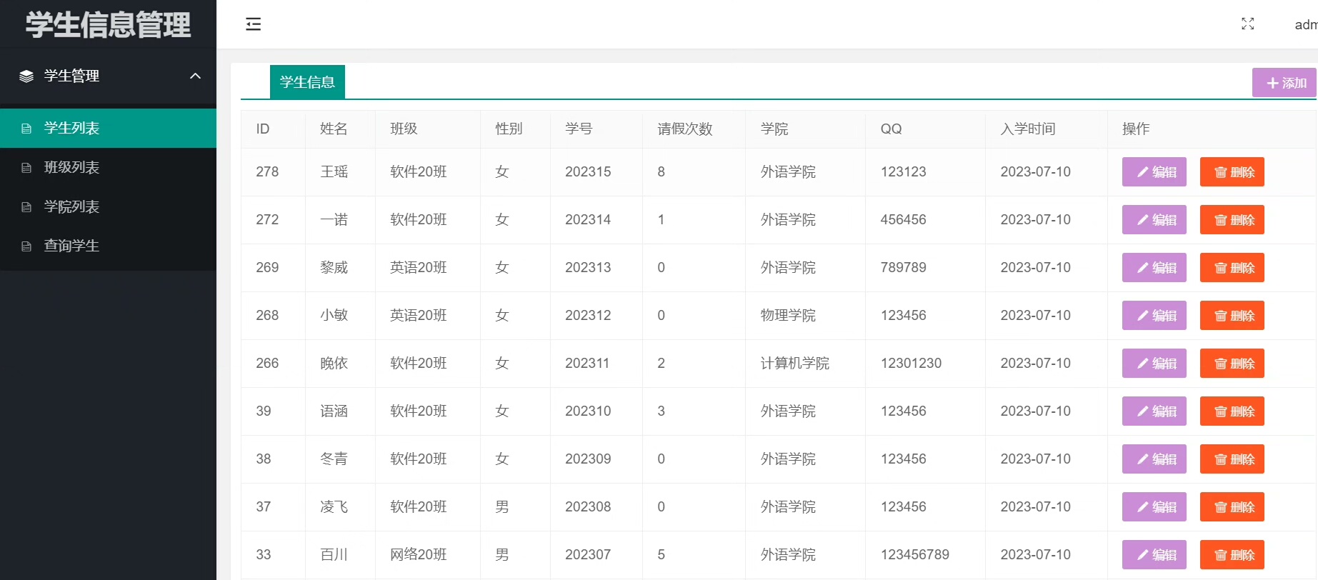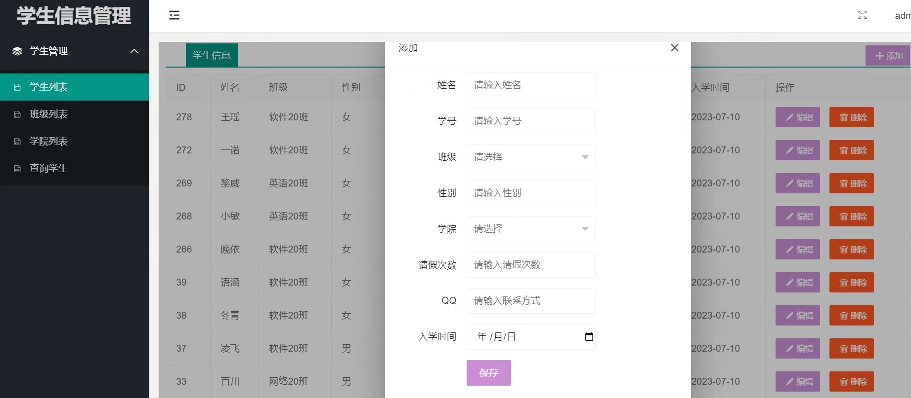 管理员可添加新学生、编辑现有记录、删除无效数据或查看详细资料,实现全生命周期的信息维护,极大提升管理效率。